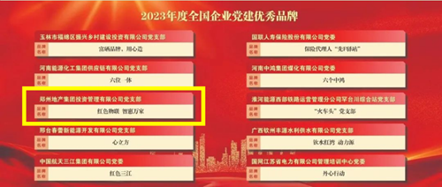 喜報!鄭州地產(chǎn)集團投資管理有限公司黨支部“紅色物聯(lián) 智惠萬家”被授予“2023年度全國企業(yè)黨建優(yōu)秀品牌”榮譽稱號