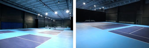 根據(jù)網(wǎng)球球小、球速快的特點(diǎn),場(chǎng)地照明燈光采用兩側(cè)和頂部混合布置的方式,嚴(yán)格控制照明水平,以滿足運(yùn)動(dòng)中球友們通過視覺掌握球速和運(yùn)動(dòng)方向,作出快速反應(yīng)的要求。