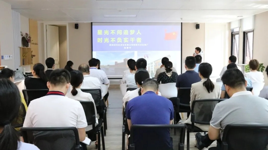 6月8日下午,鄭州市國資委宣講團(tuán)走進(jìn)鄭州地產(chǎn)集團(tuán),在4樓黨建共享中心開展“弘揚(yáng)勞模精神 激發(fā)奮進(jìn)力量”黨史學(xué)習(xí)教育專題宣講報(bào)告會(huì)。報(bào)告會(huì)特邀市國資委宣講團(tuán)成員、鄭州市污水凈化有限公司雙橋污水處理廠副廠長(zhǎng)高愛華同志,市國資委宣講團(tuán)成員、西流湖公司黨支部曹珂同志以及集團(tuán)宣講團(tuán)成員王磊同志進(jìn)行主題宣講。集團(tuán)監(jiān)事會(huì)主席李靜波、黨群工作部部長(zhǎng)李禎、鄭州西流湖控股有限公司副總經(jīng)理昌磊帶領(lǐng)40余名黨員干部代表參加報(bào)告會(huì)。